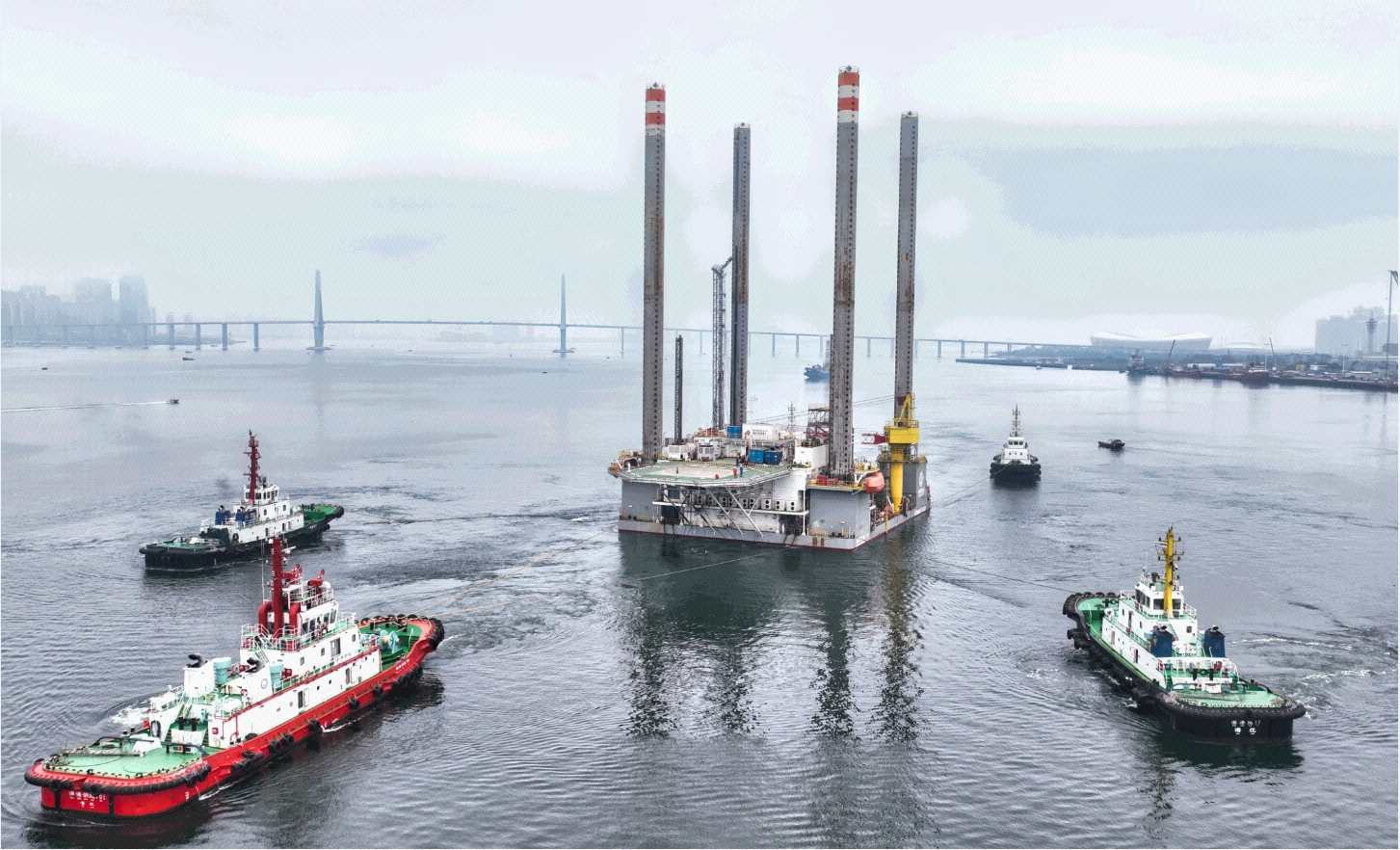 2025年4月23日,海洋石油165平台应用于涠洲5-3油田开发项目在广东湛江南油码头建造基地举行了平台发运仪式。在作业者智慧石油、合作方中国海油湛江分公司、中国船级社、海事局等单位的大力支持下,总承包商海油发展组织完成了海洋石油165平台启拖前技术检查、合规确认、环境评估等关键准备工作,上午9时海洋石油165平台缓缓驶离南油码头,奔赴涠洲5-3油田指定位置海域完成最后的海上安装调试作业。